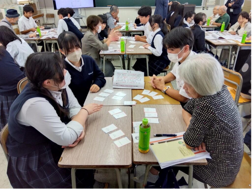 先週10月17日(金)に、徳島県美馬市の脇町高校にてジェロントロジー※1ワークショップ「人生100年時代のライフ考(こう)~世代間交流で気づく・学ぶ」を行いました。